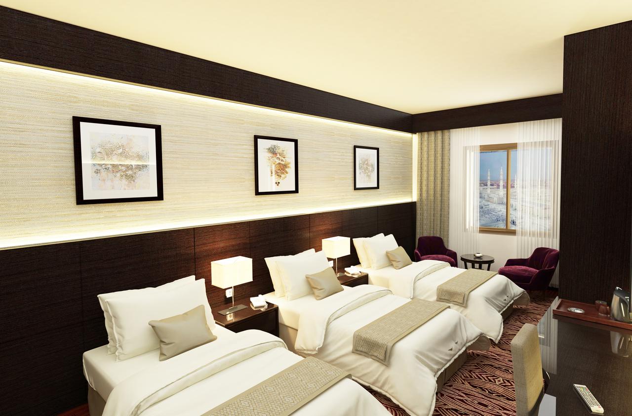 The hotel is located directly on the square of the Prophet’s Mosque and is considered one of the most luxurious hotels in Madinah. It has a charming panoramic view of the Prophet’s Mosque, near Bab Al-Majidi and the Women’s Gate, and is surrounded by shopping centers and shops in the central area.